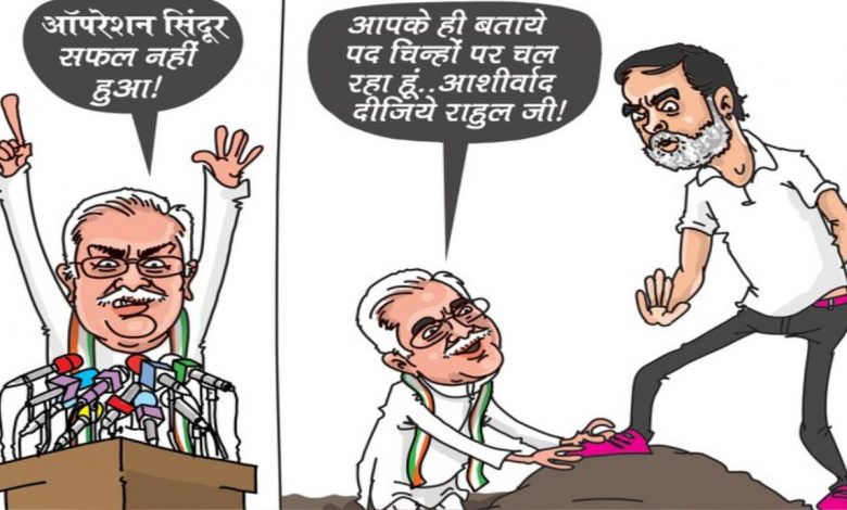 रायपुर। ‘ऑपरेशन सिंदूर’ को लेकर केंद्र सरकार पर सवाल उठाने वाले छत्तीसगढ़ के पूर्व मुख्यमंत्री भूपेश बघेल अब भाजपा के निशाने पर आ गए हैं। बुधवार को भारतीय जनता पार्टी ने सोशल मीडिया प्लेटफॉर्म X पर एक व्यंग्यात्मक कार्टून पोस्टर साझा करते हुए भूपेश बघेल पर तंज कसा है।