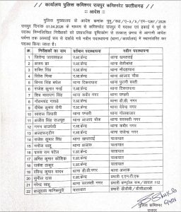 RAIPUR POLICE BREAKING | रायपुर पुलिस में बड़ा फेरबदल, कई TI बदले