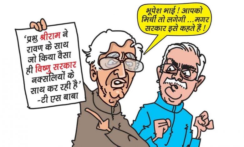 09, April, 2025 | रायपुर | छत्तीसगढ़ में नक्सलियों के खिलाफ चलाए जा रहे अभियान को लेकर हाल ही में पूर्व डिप्टी सीएम टीएस सिंहदेव ने सरकार के कार्यों की सराहना करते हुए उसकी तुलना भगवान राम से की थी। इस बयान के बाद राज्य में सियासी हलचल तेज हो गई है। अब बीजेपी ने इस बयान पर चुटकी लेते हुए भूपेश बघेल पर तंज कसा और एक कार्टून के जरिए निशाना साधा है।