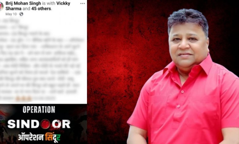 बृजमोहन सिंह ने 10 मई को अपने फेसबुक अकाउंट से एक पोस्ट किया था, जिसमें उन्होंने प्रधानमंत्री नरेंद्र मोदी को लेकर आपत्तिजनक और अपमानजनक भाषा का इस्तेमाल किया। यह टिप्पणी ऑपरेशन सिंदूर के संदर्भ में की गई थी। इसके अलावा, एक अन्य व्यक्ति ईश्वर दुबे की पोस्ट पर कमेंट करते हुए बृजमोहन ने पाकिस्तान से युद्ध के समय मोदी के रण छोड़ने की बात लिखी और गालियां तक दी।