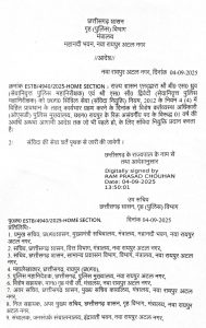 रायपुर, 04 सितंबर 2025। छत्तीसगढ़ शासन ने गृह (पुलिस) विभाग से एक अहम आदेश जारी किया है। आदेश के मुताबिक सेवानिवृत्त पुलिस महानिरीक्षक बी.एस. ध्रुव और सेवानिवृत्त पुलिस महानिरीक्षक एस.सी. दिवेदी को छत्तीसगढ़ सिविल सेवा (संविदा नियुक्ति) नियम, 2012 के तहत संविदा नियुक्ति दी गई है।