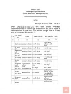 सूची में विभिन्न स्तरों के अधिकारी शामिल हैं, जिनमें सहायक अधीक्षक, उप अभियंता, कार्यपालन अभियंता, प्रभारी कार्यपाल अभियंता, निरीक्षक, सहायक लेखा अधिकारी, वरिष्ठ स्वच्छता निरीक्षक, स्वच्छता निरीक्षक, सहायक वर्ग-1, सहायक ग्रेड-2 और सहायक वर्ग-2 के नाम शामिल हैं।