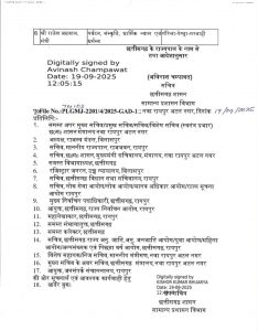 रायपुर, 19 सितंबर। छत्तीसगढ़ सरकार ने मंत्रियों के जिलेवार प्रभार में बड़ा बदलाव किया है। सामान्य प्रशासन विभाग (GAD) ने शुक्रवार को नया आदेश जारी करते हुए 6 मंत्रियों को अलग-अलग जिलों की जिम्मेदारी सौंपी है।