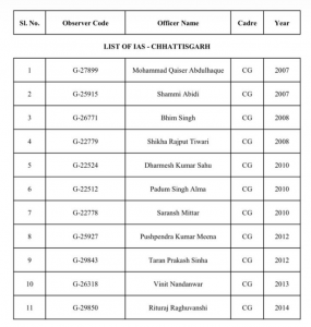 आईएएस अधिकारी: अब्दुल कैसर हक़, शम्मी आबिदी, भीम सिंह, शिखा राजपूत तिवारी, धर्मेश साहू, पीएस एल्मा, सारांश मित्तल, पुष्पेंद्र मीणा, तारण प्रकाश सिन्हा, विनीत नंदनवार, और रितुराज रघुवंशी।