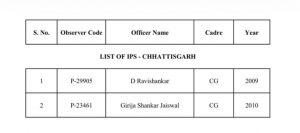 पर्यवेक्षक नियुक्त किए गए अफसरों की सूची