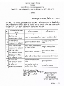 CG TRANSFER BREAKING | सचिवालय के अफसर-कर्मचारी तत्काल स्थानांतरित, देखें लिस्ट …