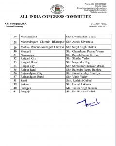 BREAKING | छत्तीसगढ़ कांग्रेस ने जारी की 41 जिलाध्यक्षों की नई सूची, कई नए चेहरे को मिली जिम्मेदारी