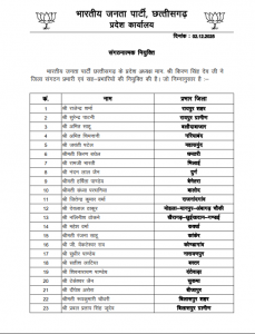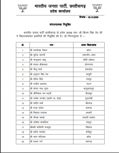 CG BREAKING | छत्तीसगढ़ BJP ने बदले समीकरण, 36 नए विधानसभा प्रभारी नियुक्त