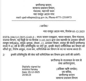 CG BREAKING | स्टेट GST में नई नियुक्ति …