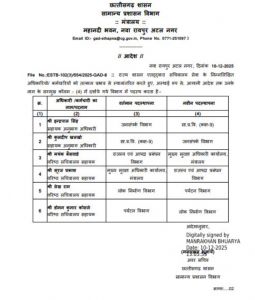 RAIPUR BREAKING | GAD ने बदले 6 अधिकारियों के विभाग