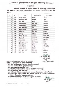 रायपुर। रायपुर में साल के अंतिम दिन जिला पुलिस महकमे में बड़ा प्रशासनिक फेरबदल किया गया है। SSP रायपुर ने देर रात तबादला आदेश जारी करते हुए मैदानी इलाकों में तैनात 119 पुलिस अधिकारियों को इधर-उधर किया है। अभी जारी सूची में 4 टीआई, 18 एसआई और 37 एएसआई शामिल हैं।
