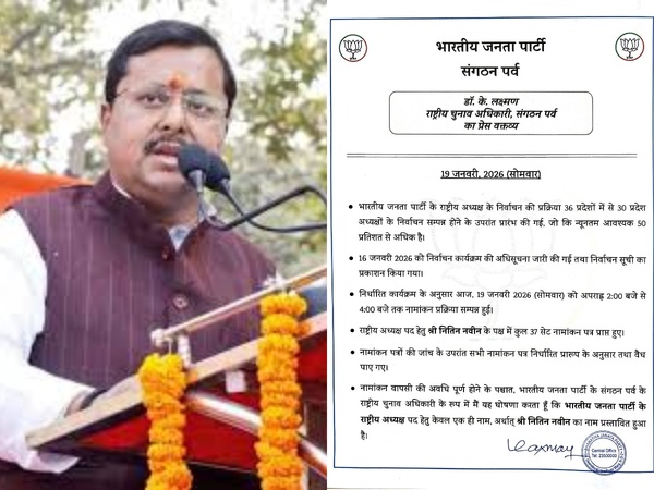 पार्टी के मुख्य निर्वाचन अधिकारी लक्ष्मण ने जानकारी दी कि राष्ट्रीय अध्यक्ष पद के लिए नितिन नबीन के समर्थन में नामांकन पत्रों के 37 सेट दाखिल किए गए थे। सभी नामांकन पत्र निर्धारित फॉर्मेट में सही पाए गए और वैध घोषित किए गए। नाम वापस लेने की समय-सीमा खत्म होने के बाद केवल नितिन नबीन का ही नाम शेष रहा, जिसके बाद उन्हें निर्विरोध अध्यक्ष घोषित किया गया।