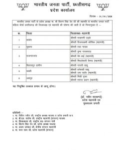 CHHATTISGARH | बीजेपी महिला मोर्चा की नई जिलाध्यक्ष सूची जारी