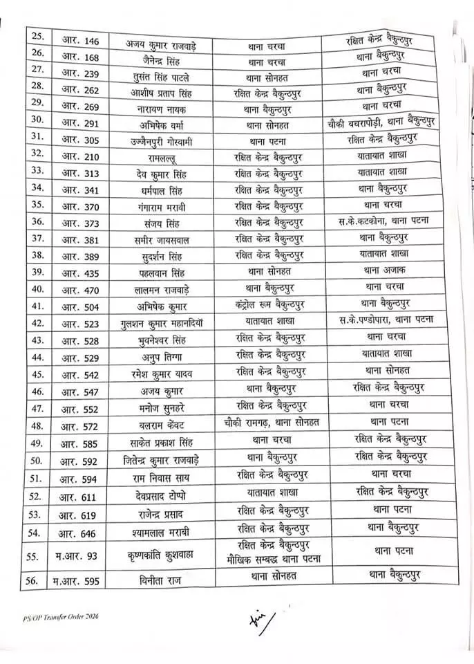 जारी सूची में थाना प्रभारियों से लेकर उपनिरीक्षक और सहायक उपनिरीक्षक स्तर के अधिकारी शामिल हैं। स्थानांतरित अधिकारी-कर्मचारियों को निर्देश दिया गया है कि वे जल्द से जल्द अपने नवीन पदस्थापना स्थल पर कार्यभार ग्रहण करें।