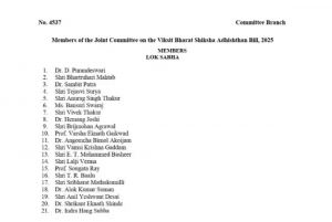 दिल्ली/रायपुर। रायपुर से सांसद बृजमोहन अग्रवाल को लोकसभा अध्यक्ष ओम बिरला ने बड़ी जिम्मेदारी सौंपी है। उन्हें ‘विकसित भारत शिक्षा अधिष्ठान विधेयक, 2025’ पर गठित संसद की संयुक्त समिति (Joint Committee of Parliament) का सदस्य बनाया गया है।