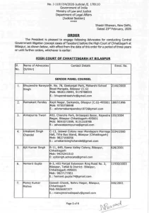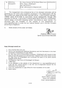 रायपुर डेस्क। छत्तीसगढ़ हाई कोर्ट में केंद्र सरकार के मामलों (कर संबंधी प्रकरणों को छोड़कर) की पैरवी के लिए 36 अधिवक्ताओं की सूची जारी की गई है। यह नियुक्तियां तीन वर्ष की अवधि के लिए की गई हैं।