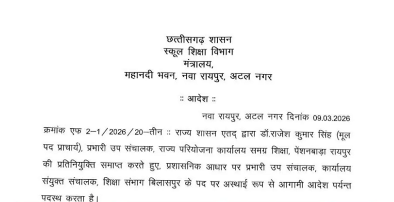 बताया जा रहा है कि डॉ. राजेश कुमार सिंह का मूल पद प्राचार्य का है और वे लंबे समय से Raipur स्थित समग्र शिक्षा कार्यालय में प्रतिनियुक्ति पर काम कर रहे थे। सरकार ने उनकी प्रतिनियुक्ति खत्म करते हुए प्रशासनिक आधार पर नई जिम्मेदारी सौंप दी है।
