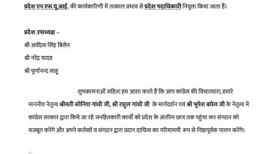छत्तीसगढ़ एनएसयूआई ने आज प्रदेश उपाध्यक्ष प्रदेश महासचिव एवं जिला अध्यक्ष के पद पर विभिन्न ने लोगों को महत्वपूर्ण जिम्मेदारी सौंपी